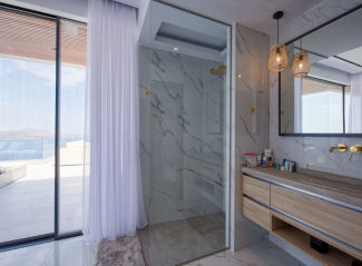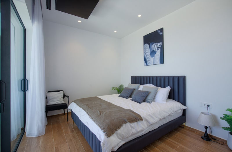 The rooftop terrace offers 360° views of the coastline and mountains. Complete with a built-in bar and lounge space, this area is ideal for quiet evenings or casual drinks with guests. Smart home systems allow you to control lights, climate, and security from anywhere.