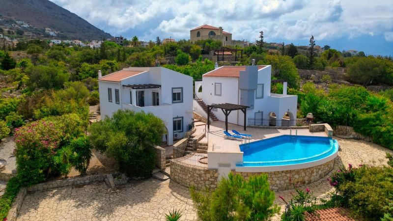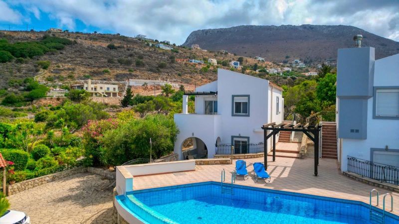 Located in the traditional village of Kokkino Chorio this charming 2-bedroom, 2-bathroom detached modern villa with a pool has fabulous panoramic sea views.