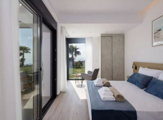 Villa Empire is a residence that merges contemporary architecture with the natural beauty of Crete. The open-plan living area, dining space, and kitchen flow seamlessly together, filled with natural light through floor-to-ceiling glass doors that frame the endless blue horizon. Every detail - from the minimalist design and high-end finishes to the curated interior décor - exudes sophistication and comfort.