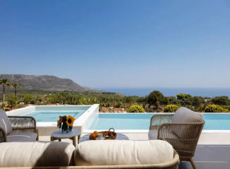 Exclusive Sale of a beautiful villa with an established vacation rental business (A lucrative investment opportunity). Perched on a serene hillside in Western Crete, Villa Empire redefines the meaning of modern Mediterranean luxury. Completed in 2021, this 184 m² residence sits gracefully on a 6,000 m² private estate, offering unobstructed views of the sea, the White Mountains, and even the distant coastline of Rethymnon. Here, every sunrise and sunset becomes a seamless blend of light, sea, and sky.