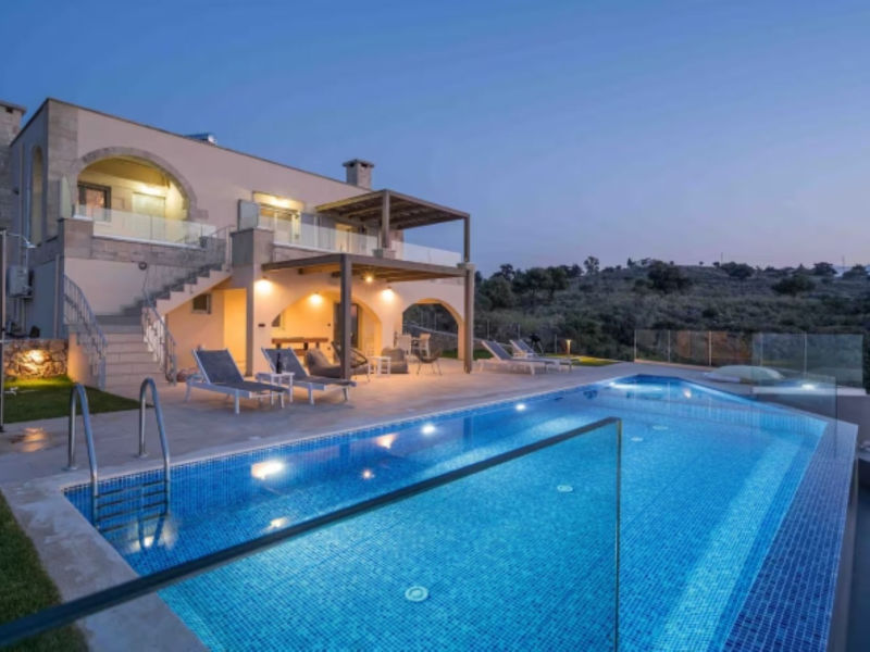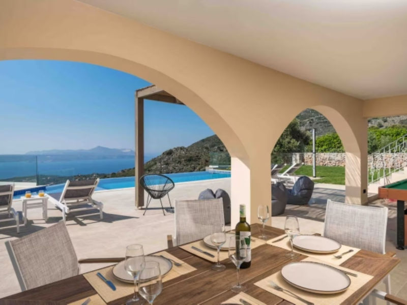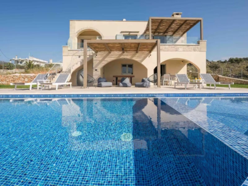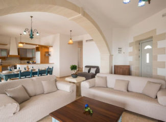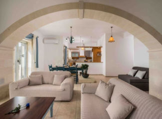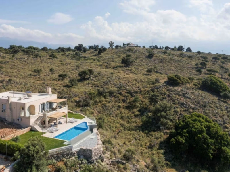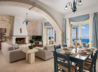 An exclusive 3-bedroom, 2-bathroom detached stone villa of 126.91 sqm, with infinity pool and uninterrupted panoramic views over Souda Bay.