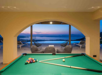 The 42m2 pool is a true infinity pool, set on the edge of the land which drops down, to provide unparalleled protected sea views. It has a seperate shallow children’s section and as well as 200m2 of lawn, the wide tiled sun terrace is partially covered for the heat of summer. There is also a guest WC and outside shower, store rooms and to the side is the outdoor kitchen area.