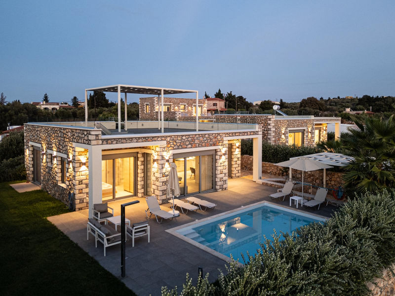 Modern Bungalow with a Traditional Look This brand-new stone-built bungalow of 103.37 m2 was built in 2022 a on a fenced plot of 500 m2. The house is a part of a small complex that offers three independent villas with private pools in Paleloni, Apokoronas. It consists of 3 bedrooms with en-suite bathrooms, a modern kitchen, spacious living room and a WC. The property offers panoramic views of the White Mountains and countryside. Outside there is a private pool of 25 m2, BBQ area, garden and a parking space.