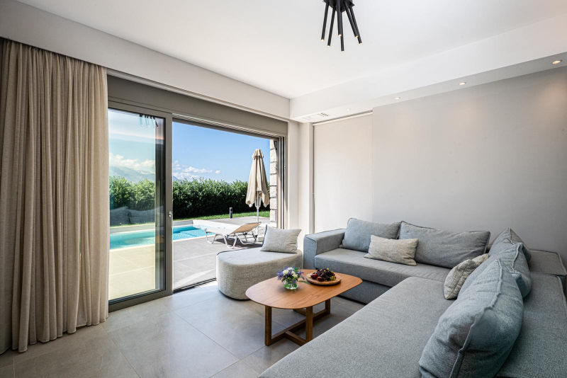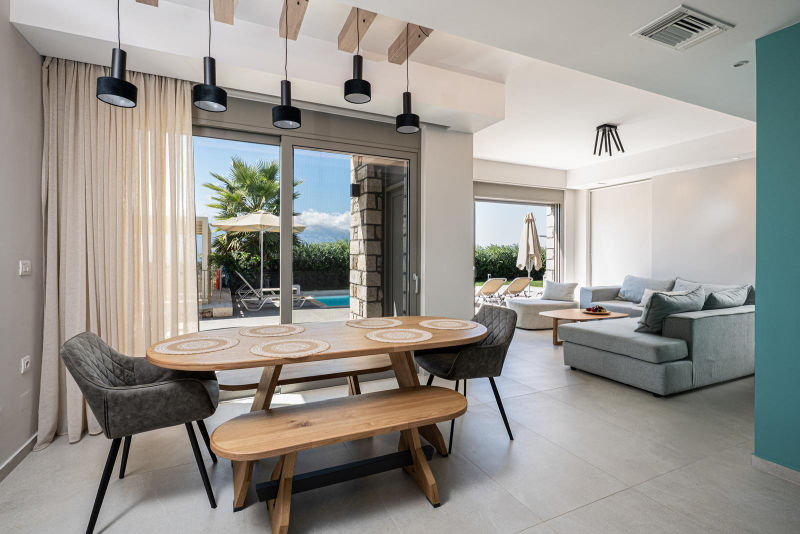 Paleloni village is surrounded by verdant hills and has mainly luxury villas and renovated, traditional houses. In the surrounding villages there are many traditional cafes and tavernas, where you can taste the local delicacies of the island and the region. Within five minutes’ drive is Vamos, a small town, where you will find tavernas, a bank, pharmacy, supermarkets, bakery and some other small shops. The nearest local beach Ombrosgialos is 4.8 km away. Almyrida, Kalyves and Georgioupolis beaches are 10-20 minutes’ drive from the house. Chania is 34 km and the airport 38 km.