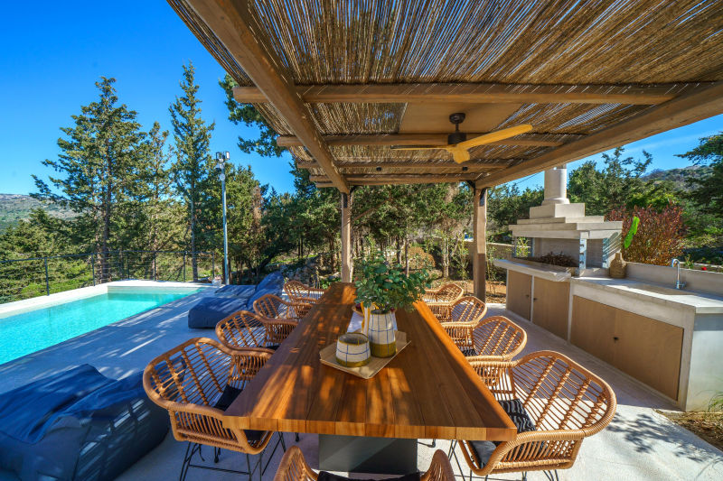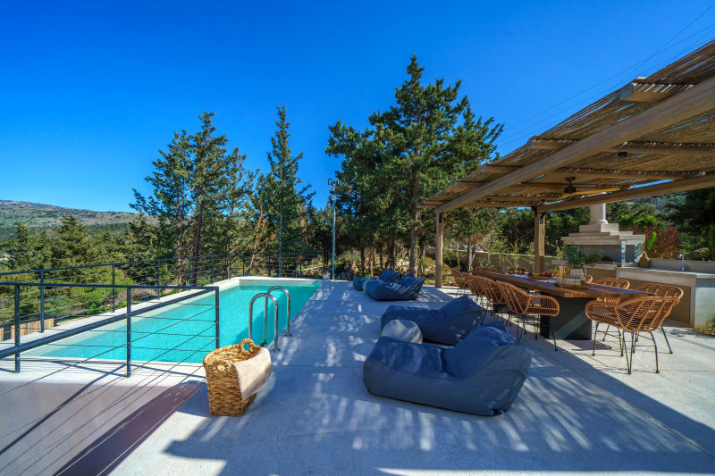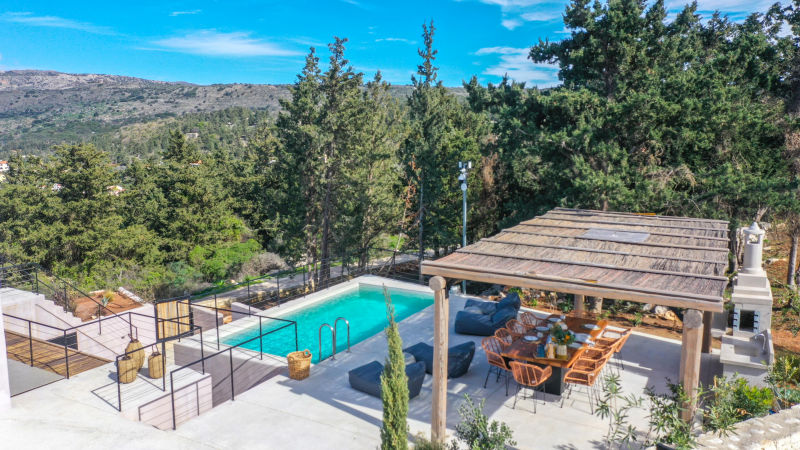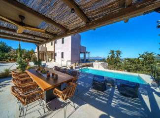 This rare property includes two modern villas, each with 4 en-suite bedrooms, sea and mountain views, and smart home features throughout. With a private pool, garage, and flexible lower-level space, it’s perfect for luxury living or rental income near Gavalochori and Almyrida beach.This spacious and tastefully designed stone villa has recently undergone professional updating to meet with today’s contemporary modern lifestyle. Villa east was built in 2006 from local honey coloured stone incorporating authentic Cretan arches, exposed rustic wooden beams and all modern amenities to provide the luxury and comfort you would expect from a house of this calibre.